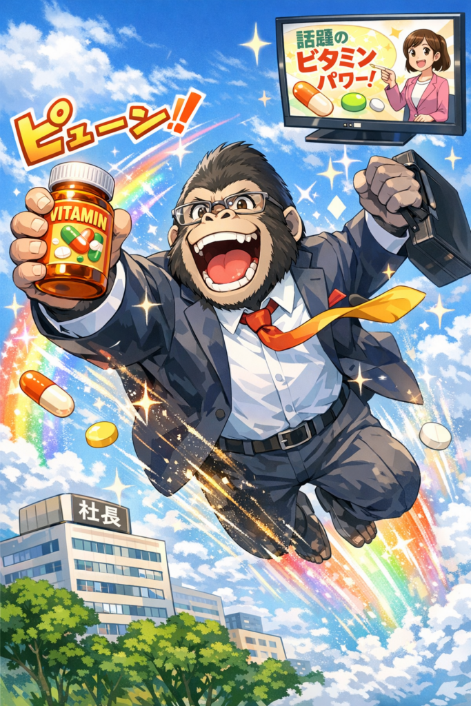 なんか、韓国からのTVニュースでびたみんCwo一杯取るのが流行ってるらしいのでミーハーな僕びたみんCを買ってきて食べて、体調一日にして、良好で皆様体調改善の特効薬で頭も良くなるラシク、僕自身は,胃から悲鳴が上がるか、頭が良くなるのが早いか、実験中の大阪住之江