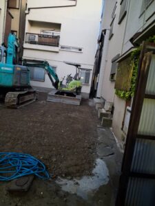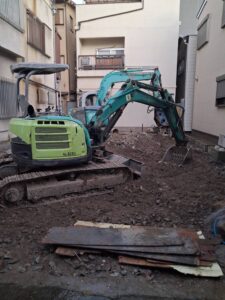 何とか終われました。狭い場所ながら鉄骨という構造で基礎も大きくをそれに見合うユンボの先に付けるアタッチメントも多岐にわたり、付けて取り外してを繰り返しての工法で、大変でしたが各作業員はスキルがアップしたと思いますしこの現 […]