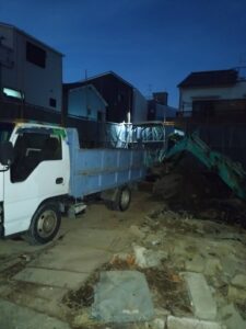 居宅が無くなってもまだまだやることが散らばってるごみを平って残土瓦礫を集め積んで、現場を綺麗に磨いていきます、明日も同じ地味なバケツ作業ですがこれが一番肝心の聖地の美しさを引き上げるのに暗く迄ごめんね大阪住之江