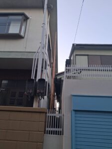屋根が境界を越えて出てるしかも陸屋根だから当然コンクリートで、隣の屋根を傷ませる危険がありそこは、手ハツリで対応、緊張続く大阪住之江