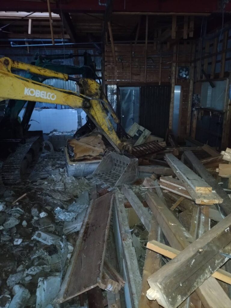 吹田市鉄骨解体 2026年1月20日 最終更新日時 : 2026年1月20日 リワーク株式会社 昨日搬入した2台のユンボの内1台早速ホースバーストで狭い場所なので2台ともOFFで全員バチにバールの手バラシ施工が大阪住之江に木材溢れさす