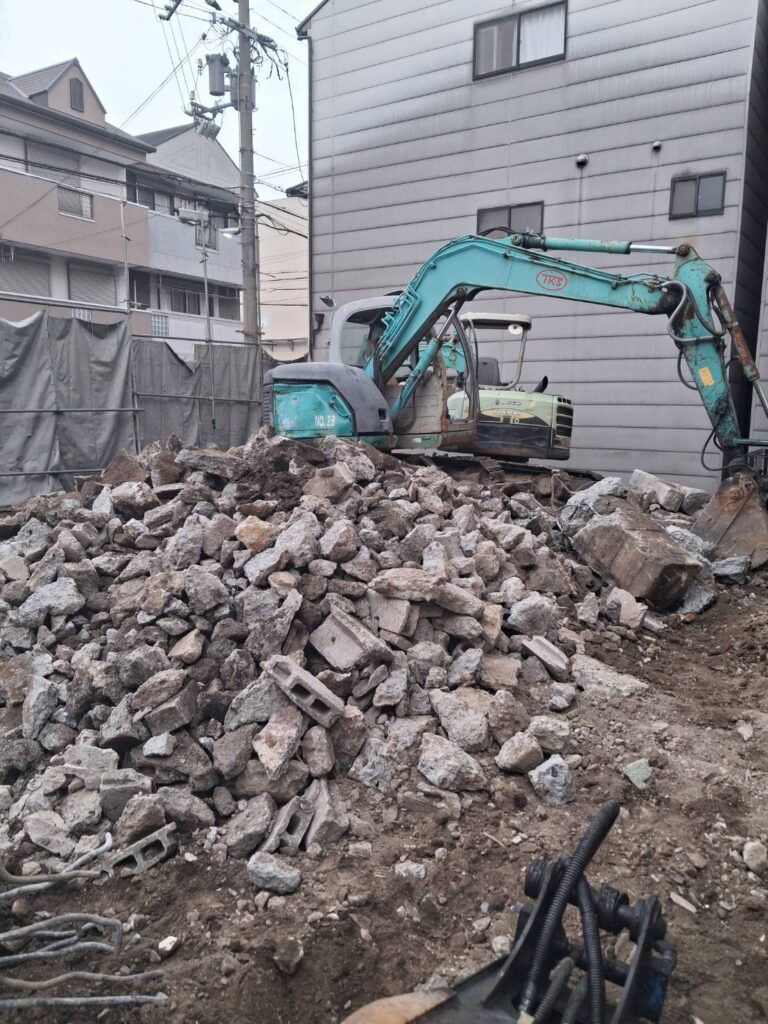 ユンボで積み込みダンプで走るしかも3トン車と4トン車の2台体制でしかし中々減らないどころか地中から様々なものがウンこれは搬出に時間かかっても,仕分けを徹底させることに然も不規則に古基礎が2メータの深さまで、ヨーシこうなったら、全面2メーターの深さまで探る大阪住之江