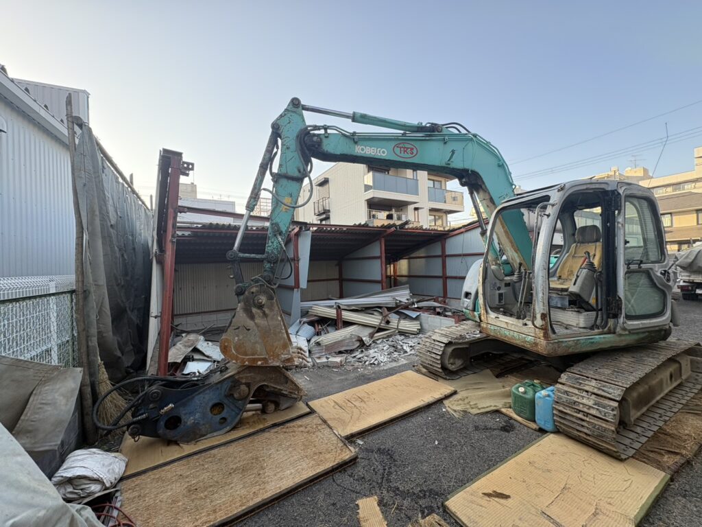 大阪市住吉区鉄骨車庫 2026年3月24日 最終更新日時 : 2026年3月24日 リワーク株式会社 アスファルト土間やコンクリートの土間は置いといてくれと、鉄骨GLでカットして上屋のみ、最近の車は車高が高いから以前の屋根付きなら返っって使いにくいのかそんな意向もドンドン大阪住之江へ