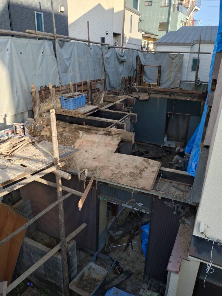 20メーターは人力小運搬一輪車始め台車など少しでも効率よく始めたいが、なかなかで職人せかして大阪住之江へ