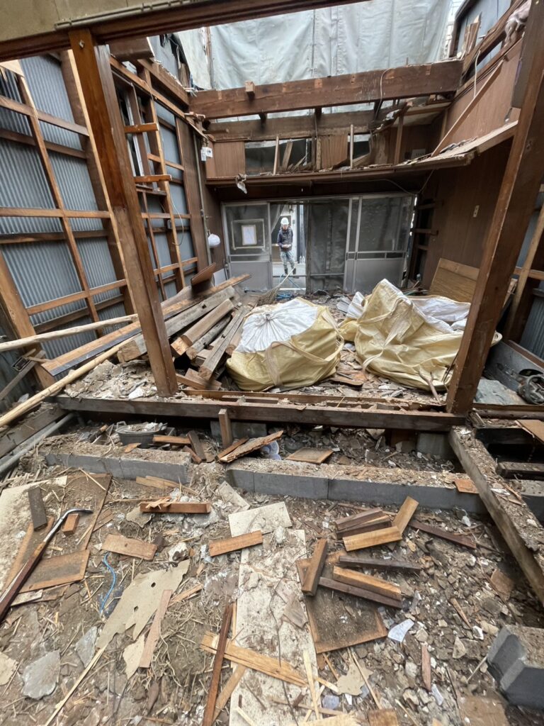 大阪市生野区切り取り 2026年3月2日 最終更新日時 : 2026年3月2日 リワーク株式会社 ウナギの寝床の様に奥深い、手バラシでバラしていくが、ダンプ迄の距離遠い、しかも四方敵だらけの状態、左右は切り取り含めてべたべた、裏もべたべた玄関部は商店街の車も人も多いコリアンタウンのすぐ近く安全第一大阪住之江