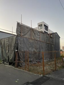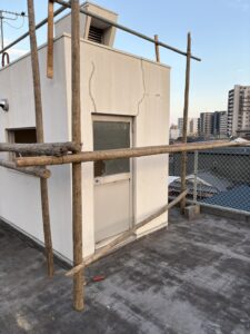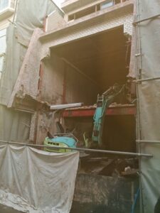 足場施工と並行しての内装解体3階建てだけど塔屋の様な出で立ちながら、階段室ではなく何に使ってたのかな?の感じだけどこれが厄介たった2坪程だけど、一番上に有るし、隣と接してて、手ハツリの手卸でガスも必須