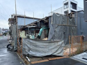 区画整理という事も有って、そろそろ解体を待つ居宅と新たに建てられた家それに不相応な青色フェンスや工事用フェンスそんな囲いを外す許可を得てユンボ搬入丁度横から取り壊したところで時間となり大阪住之江に戻ります