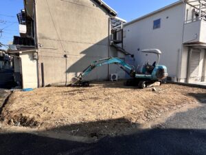 土地開発の事業につき空き地が方々有るし両隣の一軒も前に解体させてもらった所で、丁度左右とも隣家迄4メータずつ開いててこれは新人にユンボ乗ってもらう好機とうん!ちゃんと遣って大阪住之江に報告