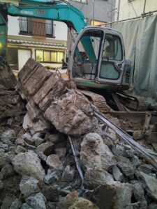 かれこれ30台はコンクリートガラ出したかな、50坪無い位なのに思ったよりも出る矢張り10トンダンプせめて4トンダンプでも入れば少しは時間が稼げるが2トンダンプではタイムパフォーマンス限界有るけど攻めてバラしていくスピード […]