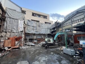 正面から大きなユンボでしかも、カッターという鉄骨をポッキーみたいにブチ切れるアタッチメント付けた20トンクラスを入れたら工期は半分で済むだろうが住宅街という、立地の為家屋の中から解体して成るべく迷惑かけない工法採用ちょっ […]